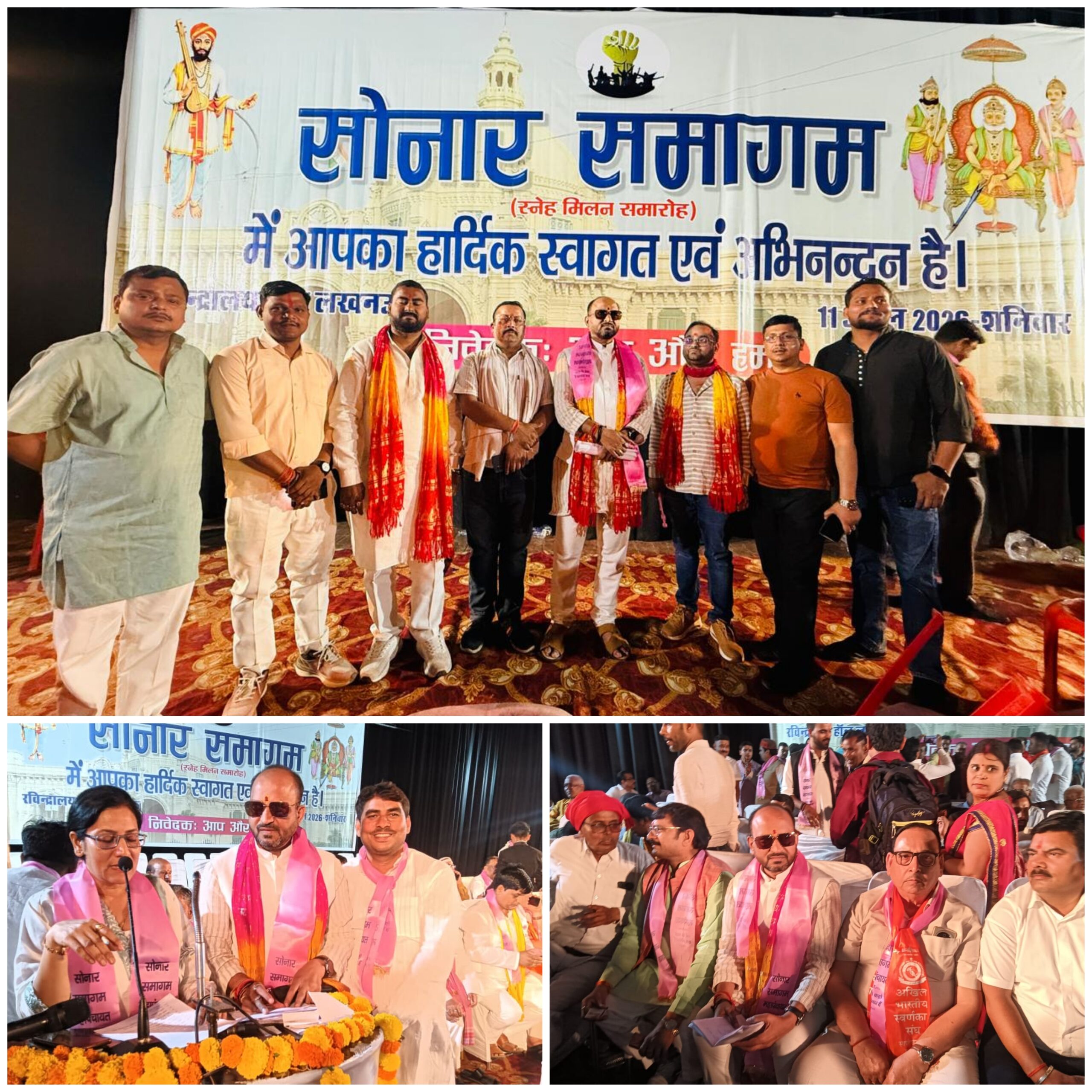 लखनऊ। बस्ती जिले से सैकड़ों की संख्या में स्वर्ण व्यवसाई शनिवार को लखनऊ में होने वाले सोनार समागम में शामिल हुए। इस समागम से समाज के लोगों ने यूपी में राजनीतिक भागीदारी के लिए एक मंच से आवाज उठाई। जिले के सभी कस्बों से बड़ी संख्या में लोग इस समागम में सम्मिलित हुए। लखनऊ सोनार समागम में बस्ती जनपद की बड़ी भागीदारी रही।