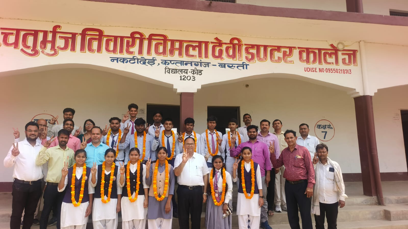 बस्ती: हाई स्कूल और इंटरमीडिएट परीक्षावर्ष 2026 के मेधावियों को आज पंडित चतुर्भुज तिवारी विमला देवी इंटर कॉलेज के प्रांगण में शिक्षकों और अभिभावकों की उपस्थिति में प्रबंधक अनिल कुमार तिवारी ने सम्मानित किया I इस सम्मान समारोह में परीक्षा में उत्कृष्ट प्रदर्शन वाले बच्चों को माला पहना कर स्वागत किया गया और उन्हें मिठाई खिलाकर खुशी व्यक्त की गई I हाई स्कूल परीक्षा 2026 में अनुराग चौधरी ने 95% अंक लाकर जिले में छठा स्थान सुनिश्चित किया ,इसके अलावा रोशनी 89% , सुधा वर्मा 87% , अंकिता आर्य 86% , युवराज यादव 85.66% , अंकित चौधरी 84.5%, आदित्य सेन 83.5% ,राजवीर सिंह 82.5% , लक्ष्मी वर्मा 81.4 % , अमन निषाद 81% , जाह्नवी 80% , प्रिंस 80% आदि बच्चों ने भी हाई स्कूल परीक्षा में 80% से अधिक अंक लाकर विद्यालय का और अपना नाम रोशन किया I हाई स्कूल परीक्षा का परीक्षाफल शत प्रतिशत रहा I