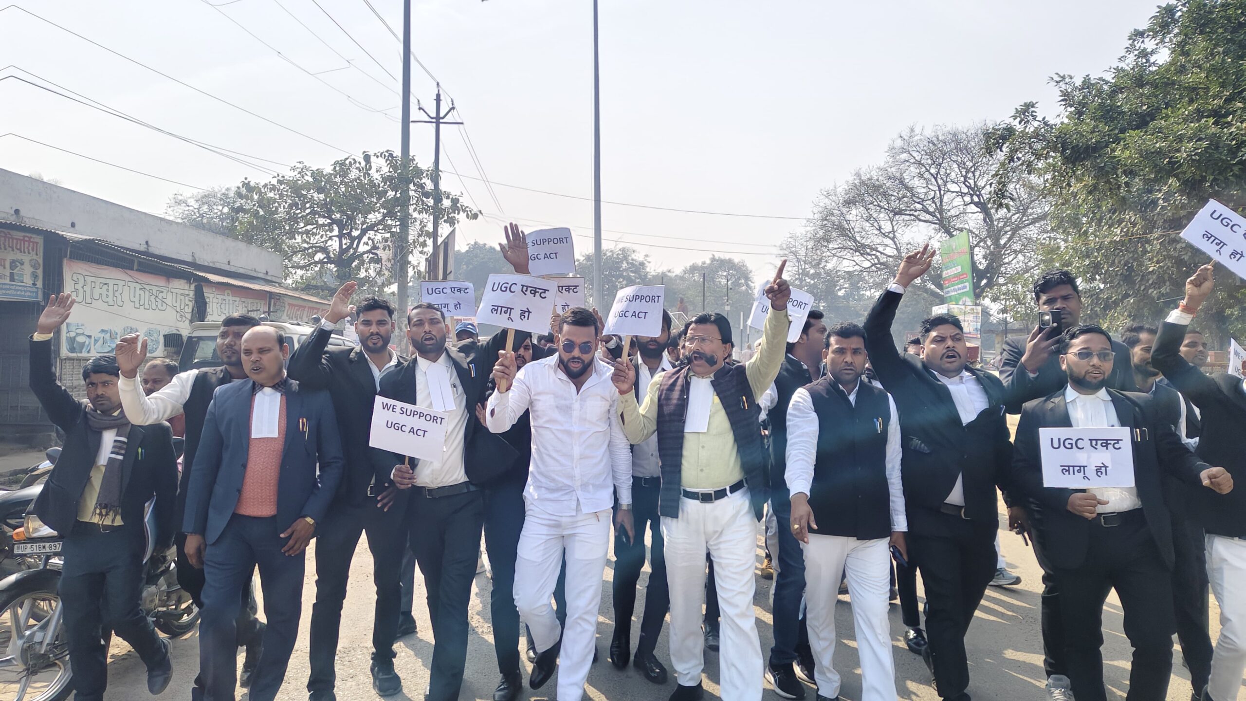 बस्ती। विश्वविद्यालय अनुदान आयोग (यूजीसी) द्वारा प्रस्तावित नए नियमों के समर्थन में शनिवार को आज्ञाराम यादव एडवोकेट, प्रदीप यादव एडवोकेट, संदीप गोयल एडवोकेट, बुद्धि प्रकाश एडवोकेट, सत्येंद्र यादव, रवि यादव एडवोकेट के नेतृत्व में जनपद के अधिवक्ताओं ने जोरदार प्रदर्शन किया। अधिवक्ताओं ने कलेक्ट्रेट परिसर में एकत्र होकर यूजीसी बिल 2026 को शीघ्र लागू किए जाने की मांग उठाई। प्रदर्शन के उपरांत अधिवक्ताओं ने राष्ट्रपति को संबोधित एक ज्ञापन जिला अधिकारी के माध्यम से सौंपा। प्रदर्शन कर रहे महिपाल पटेल, मयंक चौरसिया एडवोकेट, राम प्रसाद चौरसिया एडवोकेट का कहना था कि यूजीसी के नए नियम उच्च शिक्षा व्यवस्था को मजबूत करने की दिशा में एक अहम कदम हैं। इन नियमों के लागू होने से शिक्षा में पारदर्शिता आएगी, शिक्षण संस्थानों की गुणवत्ता में सुधार होगा और विद्यार्थियों को बेहतर शैक्षणिक वातावरण मिल सकेगा। अधिवक्ताओं ने आरोप लगाया कि कुछ स्वार्थी तत्व इन सुधारों का विरोध कर रहे हैं, जिससे शिक्षा व्यवस्था को नुकसान पहुंच सकता है। अधिवक्ताओं ने चेतावनी दी कि यदि केंद्र सरकार द्वारा यूजीसी बिल 2026 को शीघ्र लागू नहीं किया गया तो वे बृहद आंदोलन करने को बाध्य होंगे। एडवोकेट भालचंद्र यादव, विजय चौधरी एडवोकेट, देवेंद्र कुमार एडवोकेट, आलोक प्रसाद एडवोकेट ने कहा कि यह आंदोलन केवल अधिवक्ताओं तक सीमित नहीं रहेगा, बल्कि इसमें शिक्षाविदों और समाज के अन्य वर्गों को भी जोड़ा जाएगा।प्रदर्शन के दौरान अधिवक्ताओं ने यूजीसी के समर्थन में नारे लगाए और सरकार से जल्द निर्णय लेने की अपील की। इस मौके पर वक्ताओं ने कहा कि शिक्षा राष्ट्र की रीढ़ है और उसमें सुधार के लिए लाए गए किसी भी सकारात्मक कदम का समर्थन किया जाना चाहिए। प्रदर्शन में मुकेश कुमार प्रजापति, रवि चंद्र यादव, ईश्वर लाल चौधरी वा अन्य अधिवक्ता बड़ी संख्या में मौजूद रहे।