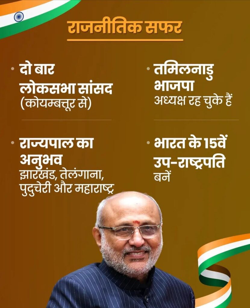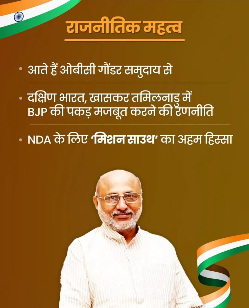 उप राष्ट्रपति पद के एनडीए उम्मीदवार राधाकृष्णन तमिलनाडु की एक प्रमुख ओबीसी जाति गौंडर से आते हैं और राष्ट्रीय स्वयंसेवक संघ (आरएसएस) की पृष्ठभूमि वाले हैं. राधाकृष्णन को 2023 में झारखंड का राज्यपाल बनाया गया था और फिर जुलाई 2024 में उन्हें महाराष्ट्र स्थानांतरित कर दिया गया था. अपने पूर्ववर्ती धनखड़ के विपरीत, राधाकृष्णन ने राज्यपाल के रूप में विवादास्पद राजनीतिक मुद्दों पर सार्वजनिक रूप से टिप्पणी करने से काफी हद तक परहेज किया है. वह 1998 में कोयंबटूर से पहली बार लोकसभा के लिए चुने गए और 1999 में फिर से इस सीट से लोकसभा के लिए निर्विचत हुए थे.