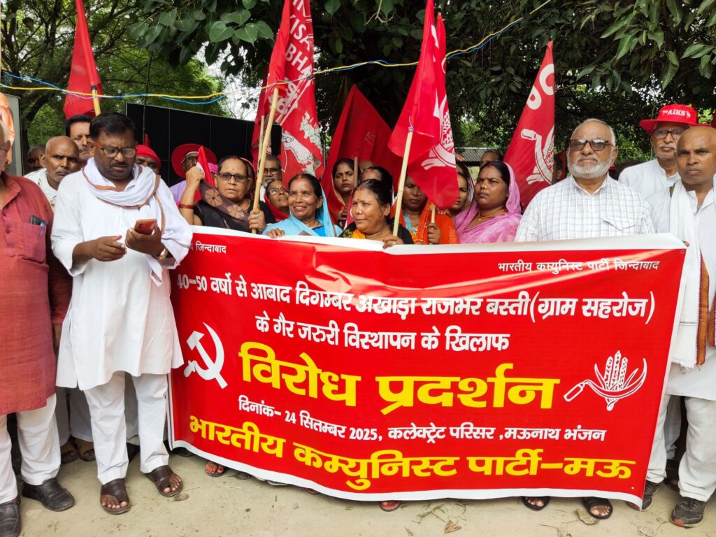 Mau: भारतीय कम्युनिस्ट पार्टी (भाकपा) के सैकड़ों कार्यकर्ताओं ने आज मऊ कलेक्ट्रेट परिसर में एक प्रतिरोध सभा आयोजित कर आवास विकास परिषद, उत्तर प्रदेश द्वारा ग्राम शहरोज में किए जा रहे भूमि अधिग्रहण के खिलाफ कड़ा विरोध जताया। भाकपा नेताओं ने आरोप लगाया कि अधिग्रहण प्रक्रिया में स्थानीय वास्तविकताओं और सार्वजनिक हितों की अनदेखी की गई है, विशेष रूप से दिगंबर अखाड़ा बस्ती के गरीब और अति पिछड़ी जातियों के लोगों को न तो पूर्व सूचना दी गई और न ही उन्हें अपना पक्ष रखने का अवसर प्रदान किया गया।