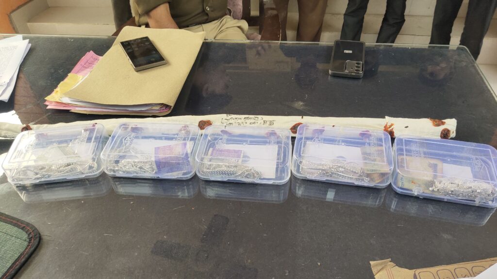 मऊ। ग्राम सरवां बाजार में बीते दिनों सुनार की दुकान का शटर तोड़कर की गई चोरी की घटना का पुलिस ने बड़ा खुलासा किया है। पुलिस ने इस चोरी में सम्मिलित 05 अभियुक्तों को गिरफ्तार किया है। इनके कब्जे से चोरी की 11 जोड़ी सफेद धातु की पायल, ₹520 नकद और चोरी में प्रयुक्त दो लोहे की छड़ बरामद की गयी हैं।