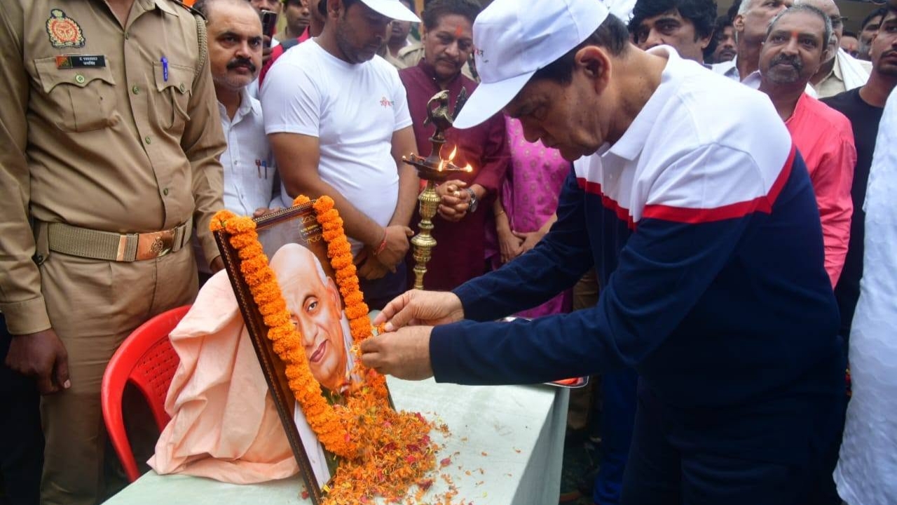 मऊ। लौह पुरुष सरदार वल्लभभाई पटेल की 150वीं जयंती पर नगर विकास एवं ऊर्जा मंत्री श्री ए.के. शर्मा ने मऊ प्रवास के दौरान उन्हें भावभीनी श्रद्धांजलि अर्पित की। मंत्री ने बलिया मोड़ स्थित सरदार पटेल की प्रतिमा पर माल्यार्पण किया तथा डॉ. भीमराव अंबेडकर स्टेडियम में “रन फॉर यूनिटी” कार्यक्रम का दीप प्रज्वलन कर शुभारंभ किया।